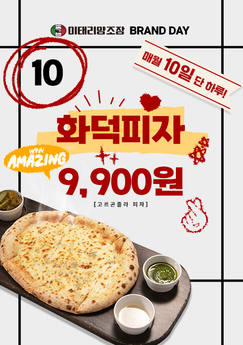 이태리양조장 화덕피자 할인, 매월 10일 단 하루! 브랜드데이 프로모션