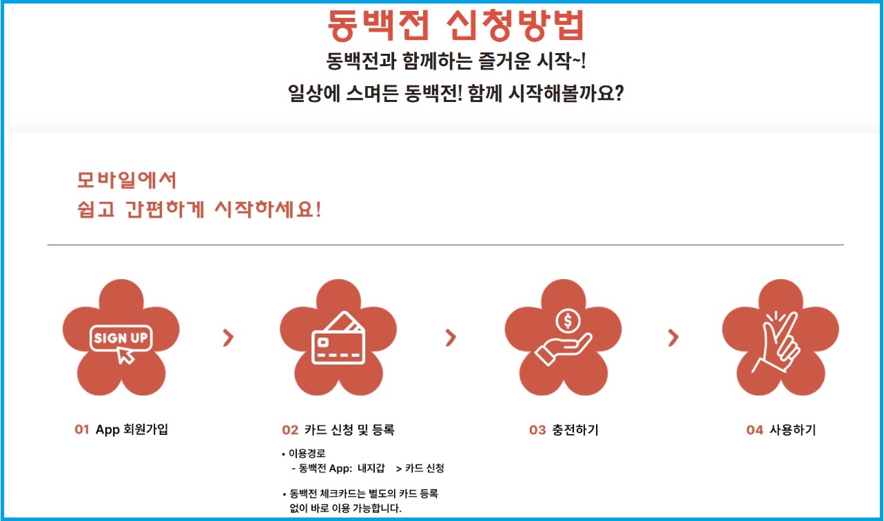 - 기존 이용자: 이미 동백전 후불교통카드를 사용하고 계신다면, 별도의 카드 발급 없이 사용 중인 카드를 삼성월렛 앱에 등록하는 것만으로 즉시 모바일 동백패스를 이용할 수 있습니다.