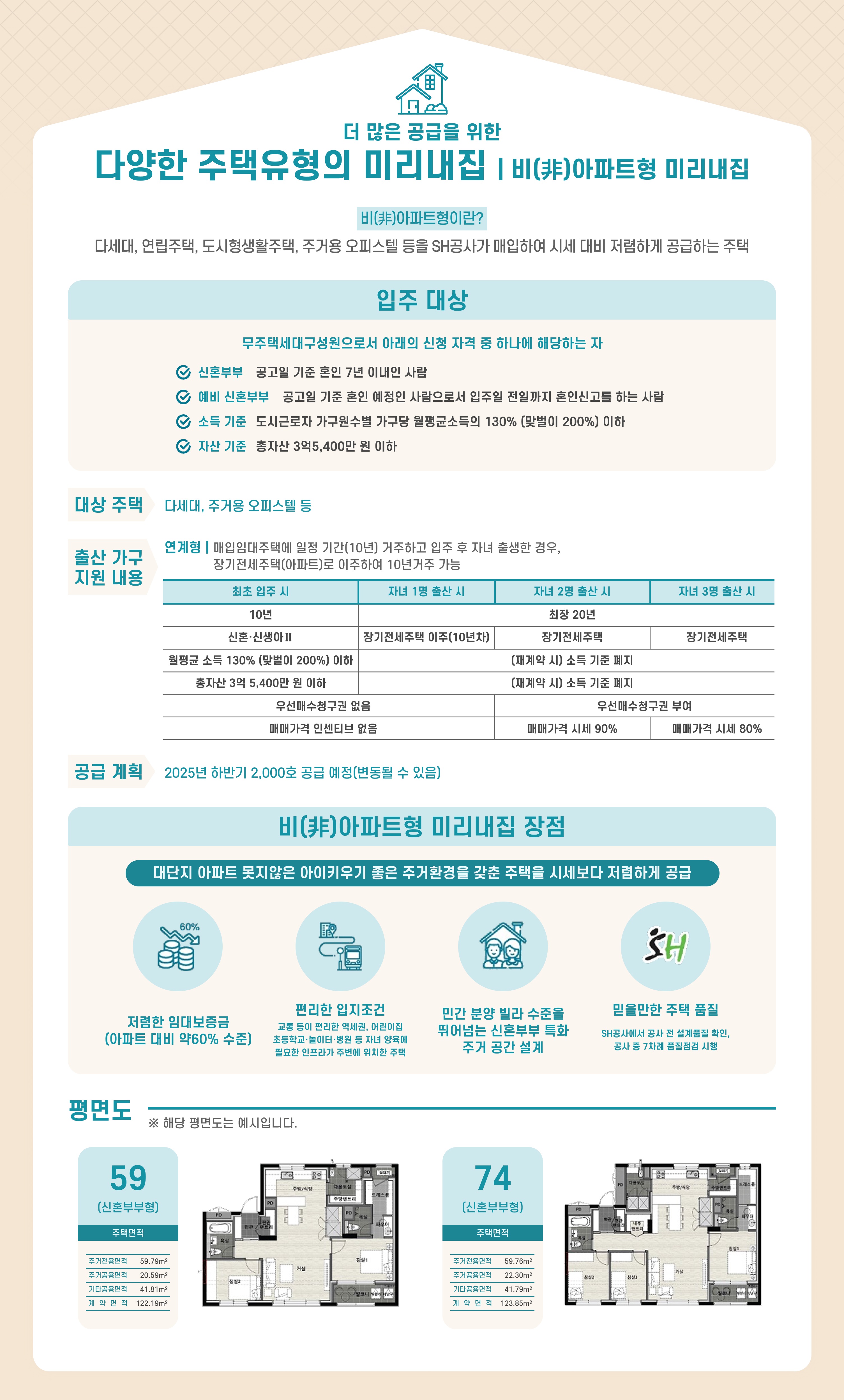 - 대상: 무주택 세대원으로 구성된 신혼부부 또는 예비 신혼부부여야 합니다.