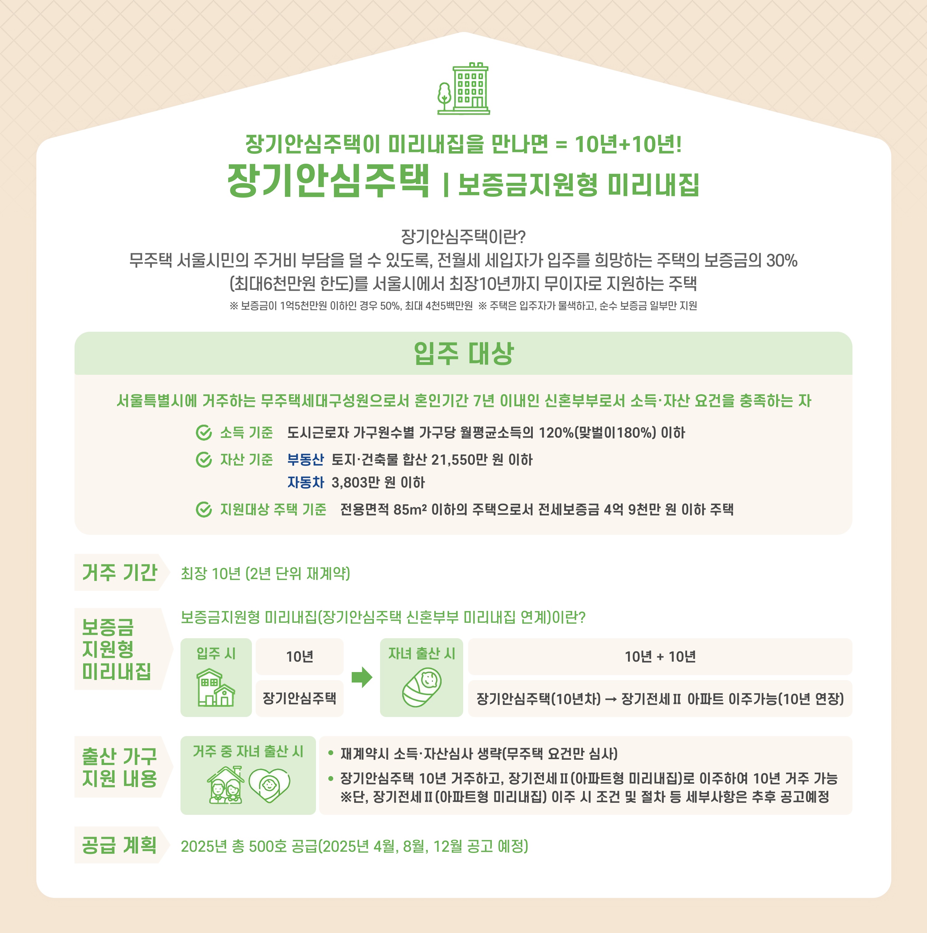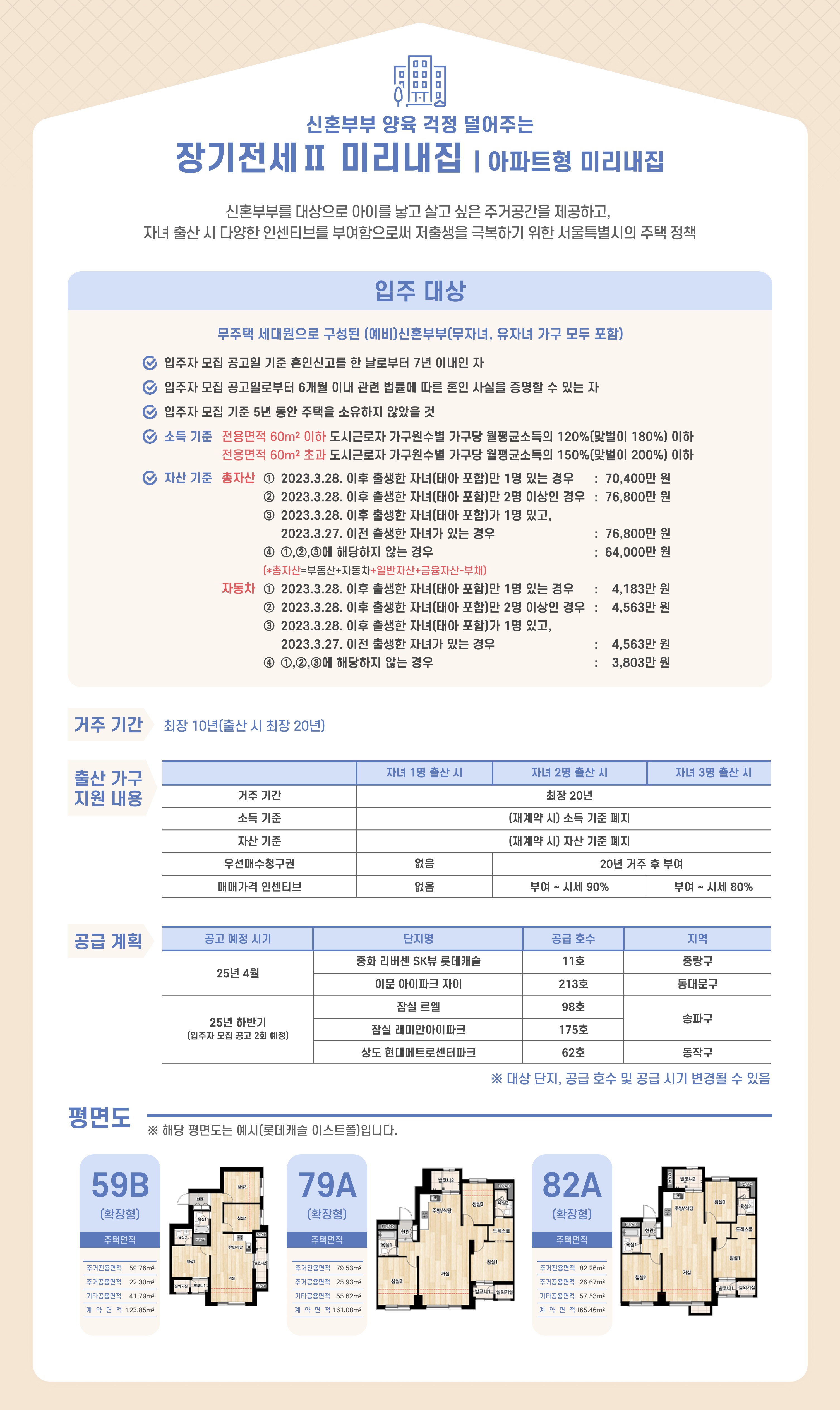 - 주택 소유 이력: 부부 모두 모집공고일 기준으로 최근 5년 이내에 주택을 소유한 사실이 없어야 합니다.