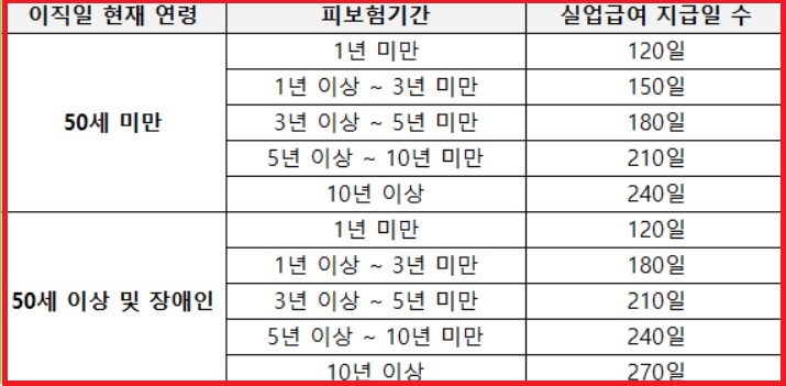 ※ 실업급여는 이직일의 다음날부터 12개월을 초과하면 소정급여일수가 남아있더라도 지급을 받을 수 없음