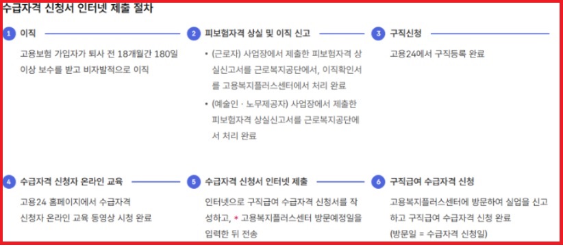 ① 고용24 전산망을 통하여 구직신청을 하고,